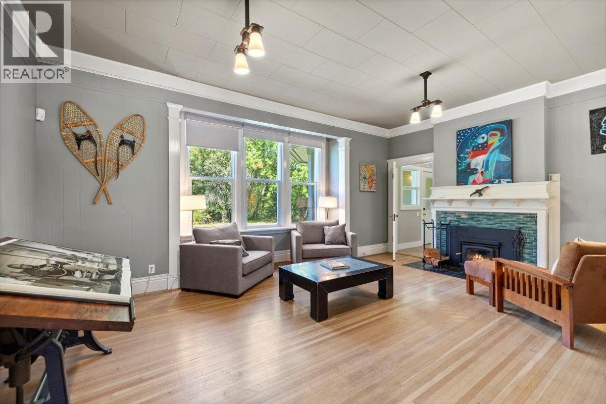 A Victorian architectural masterpiece located in the heart of downtown Fernie. The main floor has a traditional layout not seen in modern homes. Directly off the entry foyer you will find the inviting den/library space that leads into the back hall and the adjoining two car garage. Also off of the foyer is the Great room with fireplace, with massive windows and plenty of space for entertaining guests and family. The kitchen lies at the front of the home, and its galley style allows for ample counter top and storage space and easy access to the attached formal dining room. Upstairs you will find 5 bedrooms, 2 with ensuite baths, a 4th guest bathroom and access to the attic. The attic has been converted into an oversized family that allows for additional sleeping space or a quiet space for kids to play. This expansive property is 0.67 acres in size and offers privacy and serenity steps from the downtown core of Fernie, BC. The rear yard is flat, level and features mature trees throughout with incredible views of the Elk Valley and Fernie Alpine Resort. At the front of the property there are two large outbuildings that offer extensive storage space or could possibly be converted into guest accommodation. At the south end of the property there is a large vegetable garden, and a custom built timber framed gazebo that is heated and offers shelter during inclement weather or from the sun. There are not many of these types of homes remaining in Fernie, don’t overlook this opportunity. (id:17834)